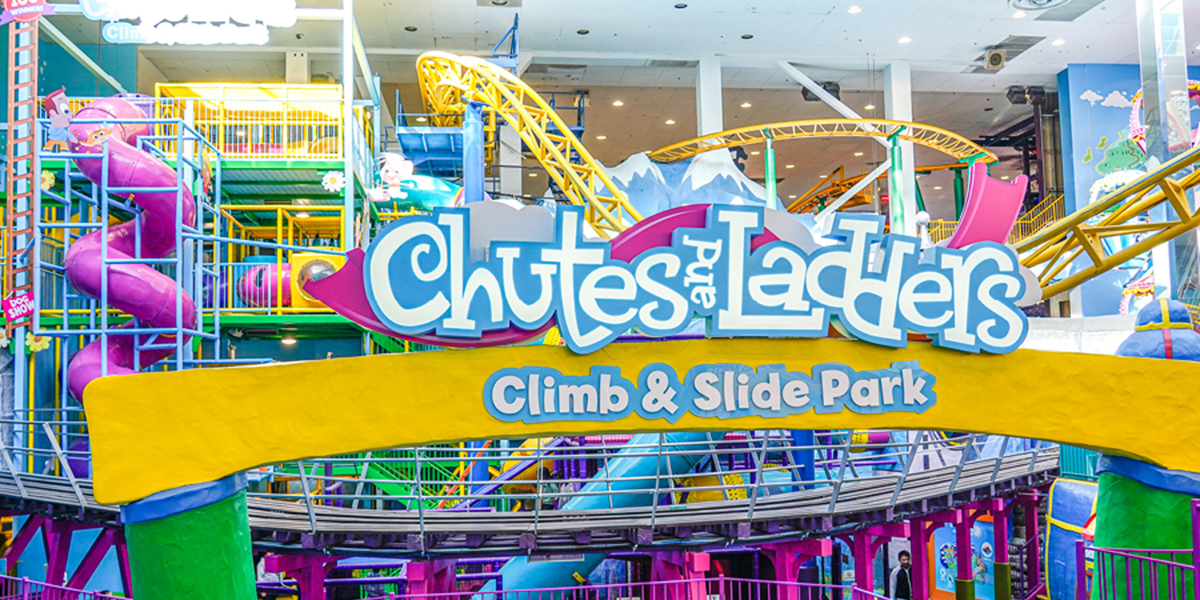 Chutes and Ladders Climb & Slide Park a multi-level play park that consists of bridges, slides, climbing obstacles and ball pools.