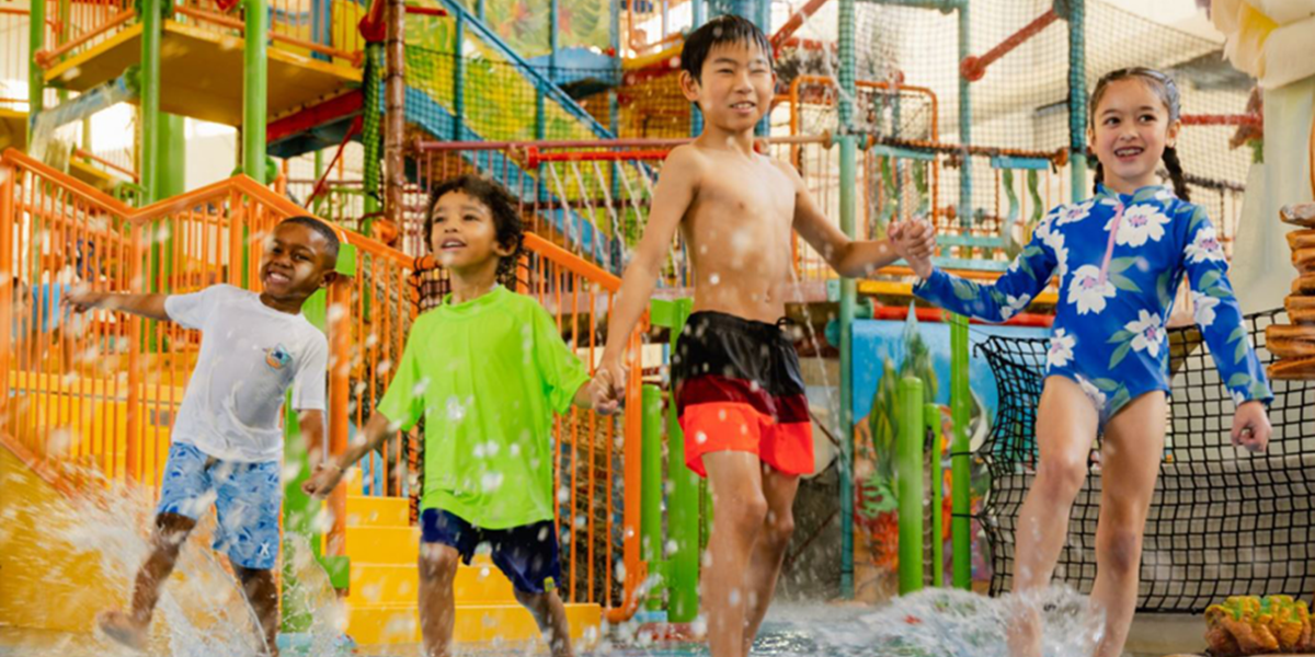 Multi-level play structure to climb and crawl around on slides, pipes, pull ropes, water buckets, rope walks. The Caribbean cove features and a 1200-liter bucket that dumps water down the front of the structure every 2 minutes!