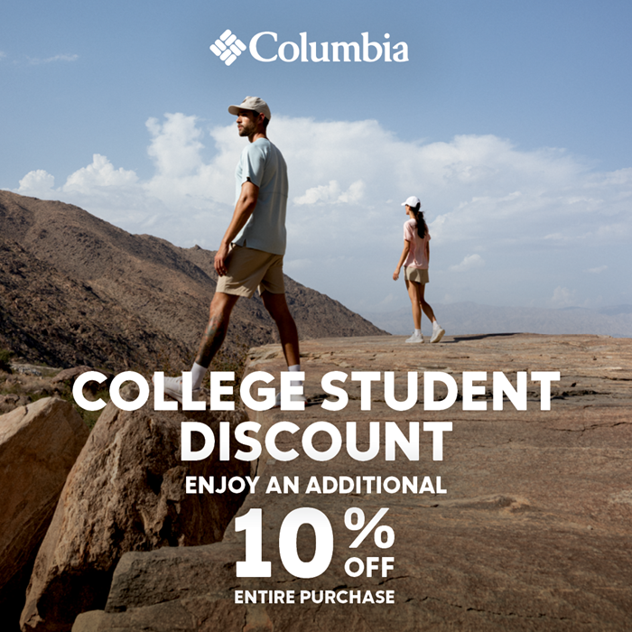 *Active and retired teachers receive 10% off (before tax) at participating Columbia-owned stores in U.S. and Canada 01/01/2026 through 12/31/2026. Excludes U.S. and Canada employee stores. Must present valid school I.D. Offer is non-transferable and may not be applied to prior purchases, combined with any other offer or discount, redeemed at any other store, or applied to gift card purchases, taxes, or shipping charges. Columbia reserves the right to change or cancel this offer at any time.