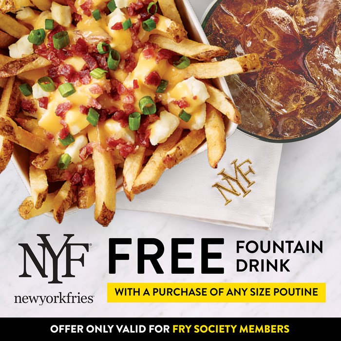 New York Fries serves premium fresh cut fries made from whole, russet potatoes cooked in non-hydrogenated and non-GMO sunflower oil. NYF's delicious fresh cut fries are the base for a variety of gourmet poutines. From Classic (vegetarian) Poutine and Pulled Pork Poutine to Butter Chicken Poutine and Bacon Double Cheese Poutine, you are sure to find a favourite at New York Fries. NYF also sells a premium chicken & beef hot dog with no additives or artificial preservatives as well as a variety of sauces and dips. Vegetarian, Gluten-Free and Vegan friendly options available.