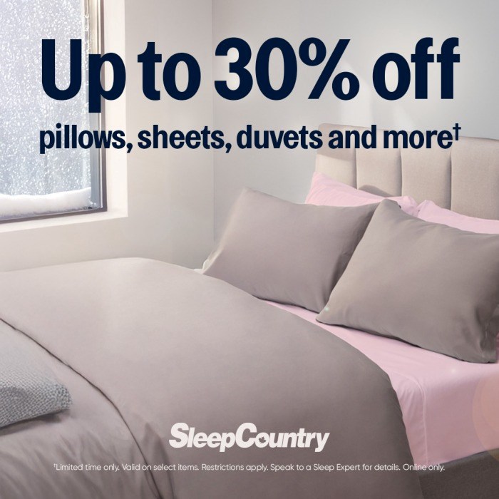 Sleep Country Canada is the leading specialty retailer of mattresses and sleep accessories in Canada. Our commitment to providing Canadians with a better night's sleep is unparalleled in the industry. We carry a wide range of mattresses, adjustable lifestyle bases, pillows, duvets, sheets, headboards, frames, mattress protectors, pillow protectors and more -- everything you need for a great night's sleep. At Sleep Country, we believe that a better tomorrow starts tonight, with the right bed for you.