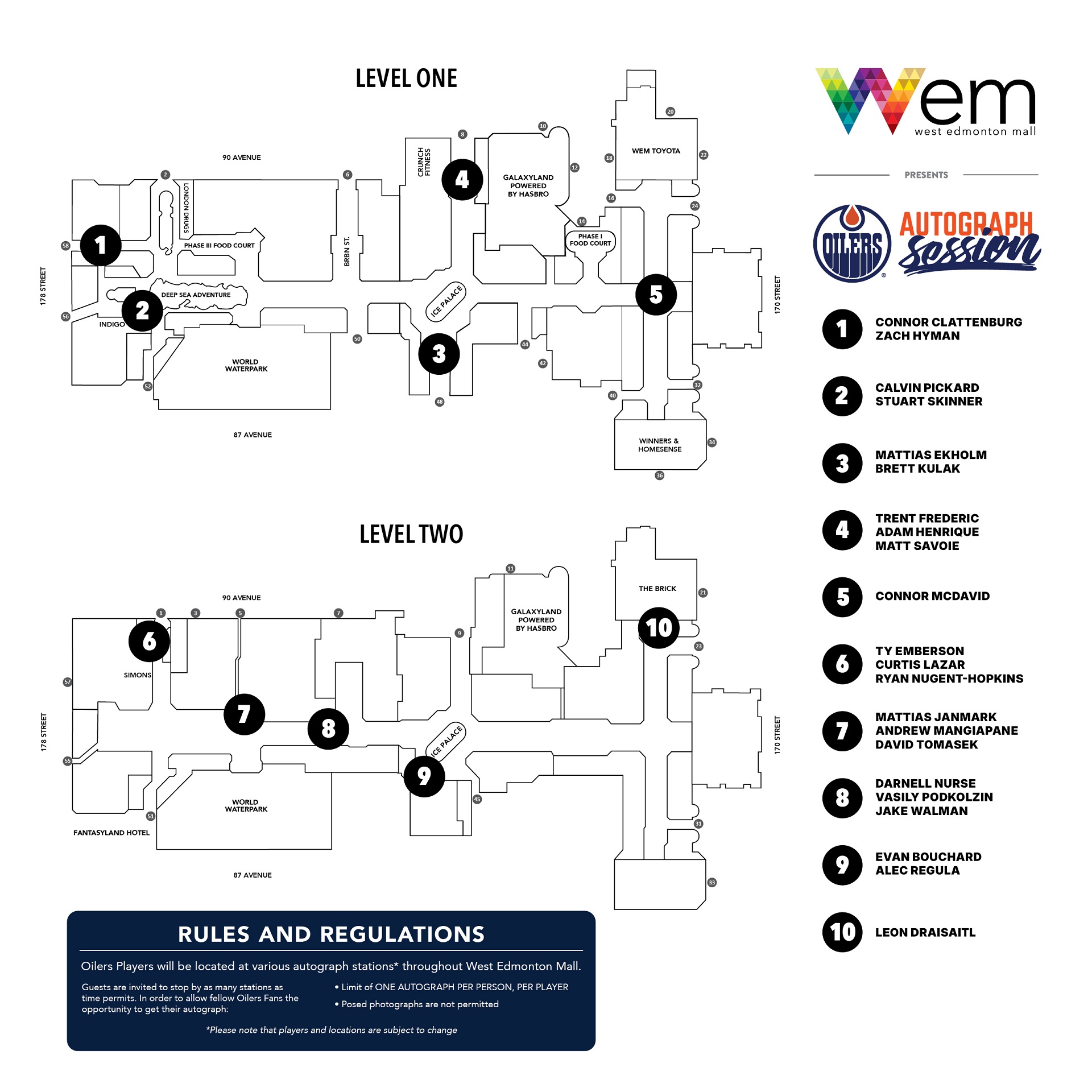 West Edmonton Mall is excited to welcome the Edmonton Oilers for an Autograph Session on Thursday, November 27 from 6 to 8 p.m. This is an exciting and unique opportunity for fans to connect with their favourite players, so be there early to secure your spot!