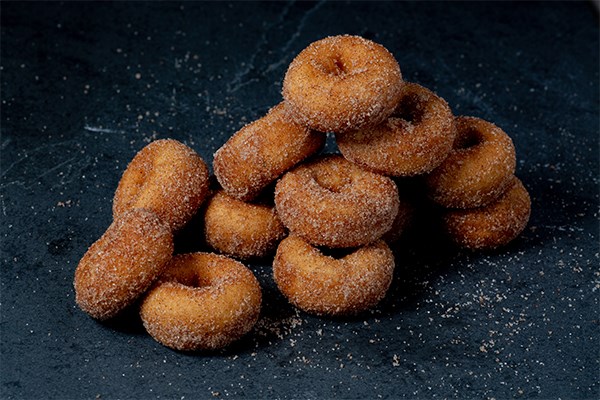 Mini donuts fried until golden brown, topped with cinnamon sugar.