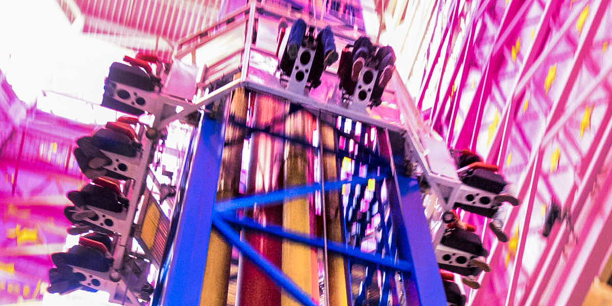 3...2...1...Blast Off! Strap in for an exhilarating ride on the world's tallest indoor tower ride. After a quick countdown, riders will take-off from the ground at 55 km/h reaching a height of 120 feet in the air!