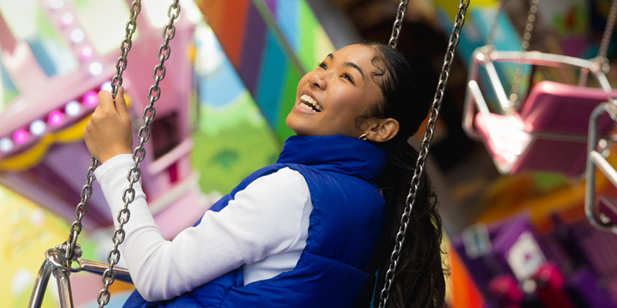 Seats swing outward as the ride rises and travels in a forward, circular direction.