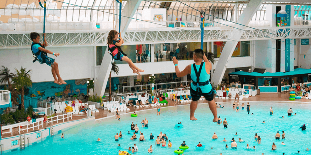 Soar across the waves on SkyFlyer Zipline, the world's largest indoor zipline!