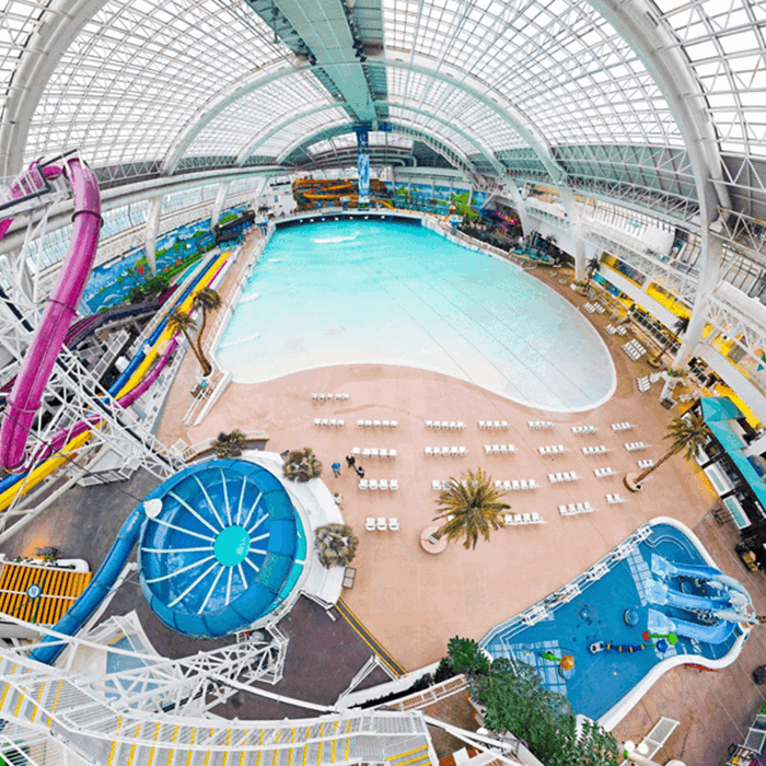 Experience Canada’s largest indoor wavepool containing a massive 12.5 million liters (3.3 million gallons) of water. Blue Thunder mimics a true beach where swimmers can simply wade into the shallow water. On the deep end, you can catch waves as high as 1.4 metres (4.5 feet) to carry you back to shore.