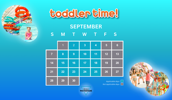 Make a splash with Toddler Time at World Waterpark - enjoy slides and water fun together, all at a discounted rate!