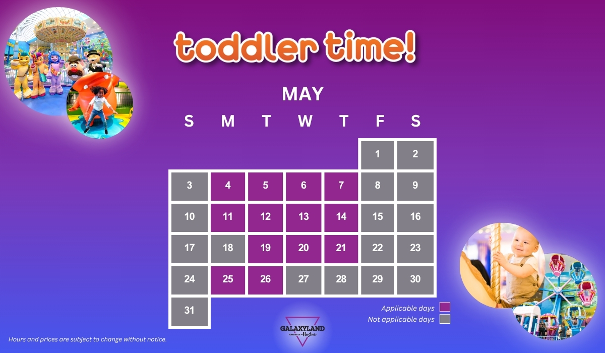 Join us for Toddler Time at Galaxyland - Little ones ride with one chaperone for a big-time adventure at a small-time price!